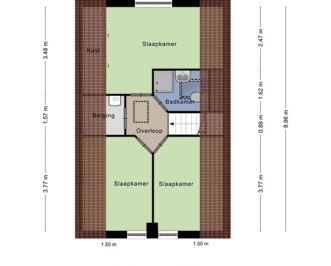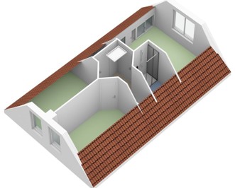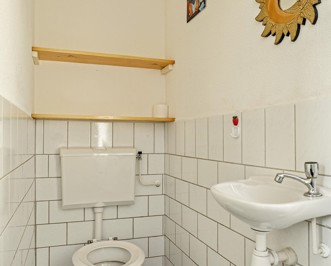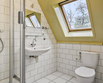 Vanaf de overloop is er toegang tot de 3 slaapkamers, de badkamer en een berging. De badkamer is voorzien van een wastafel, een douchehoek en een toilet. In de berging staat de CV-ketel opgesteld.