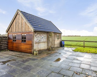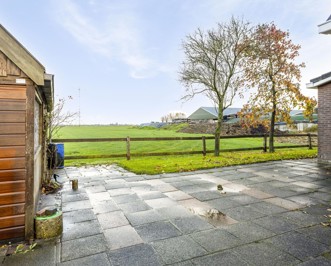De achtertuin, van maar liefst 350 m2 incl. bergingen, ligt rondom de woning. Het beschutte terras is gelegen aan de noordzijde van de woning. De tuin beschikt over een achterom, twee ruime berging, een carport en een prachtig uitzicht over de weilanden.