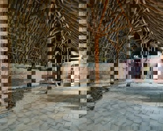 De traditionele schuur, gebouwd rond 1850 is opgetrokken in steens muren. Het dak is in 2004 voorzien van een nieuw rieten dak (onderste deel dakpannen), met gebinten constructie van hout. De schuur is ingericht met hooitassen en het oude bûthús.